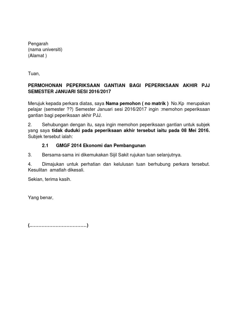 Surat Permohonan Exam Gantian Pdf